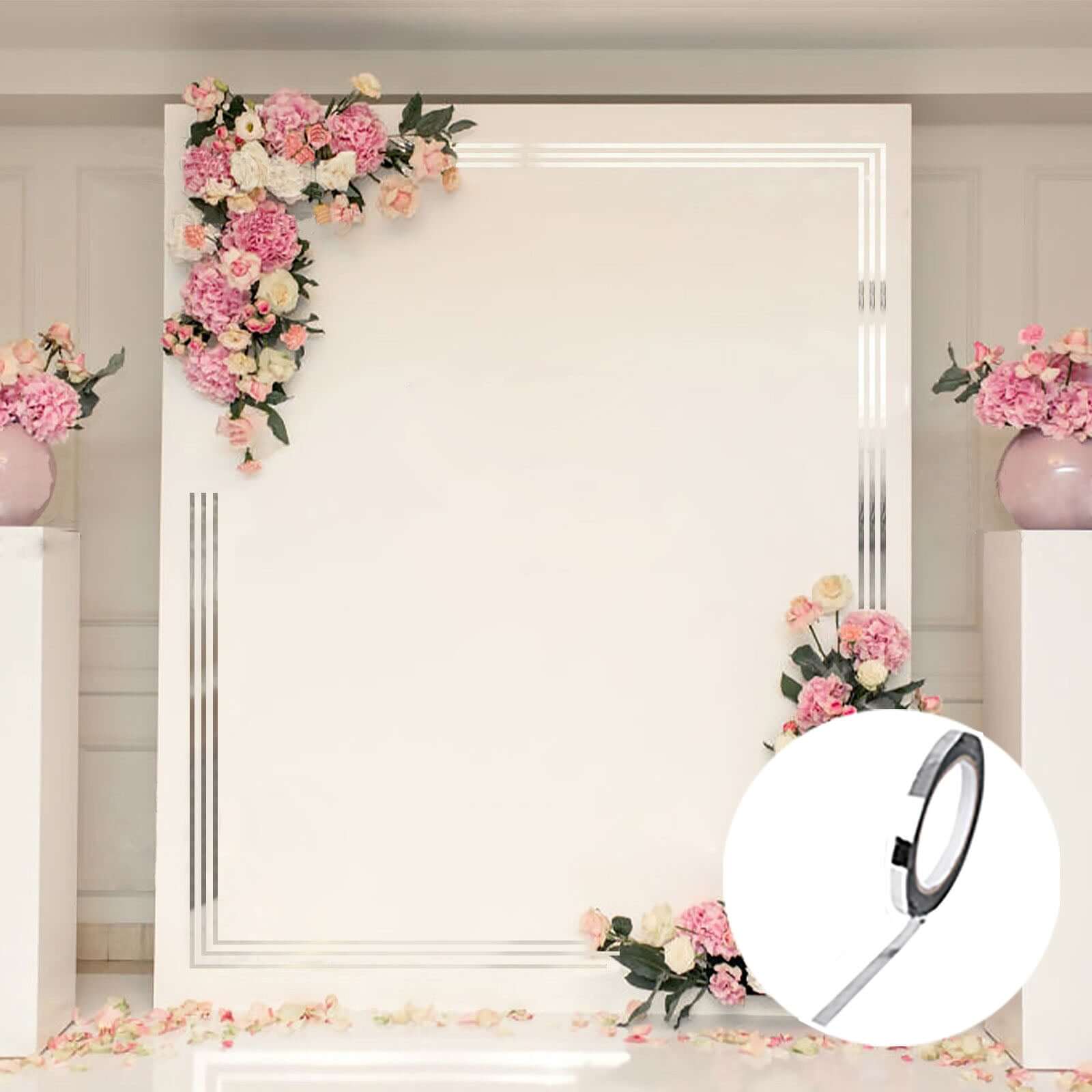 100 Yds 3/8" Silver Metallic Film Tape Adhesive, DIY Floral Wrap Craft Decor Tape - Polyester with Acrylic